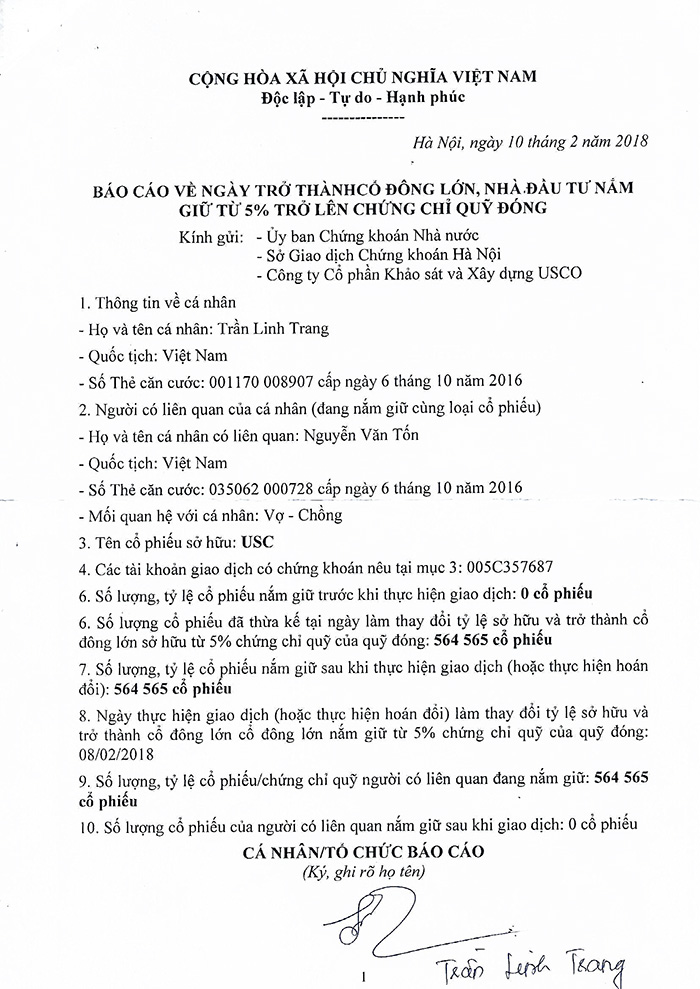 Thông báo về ngày đăng ký cuối cùng để thực hiện quyền chi trả cổ tức năm 202412/09/2025Chốt danh sách chi trả cổ tức_Nghị quyết Chi trả cổ tức_Nghị quyết ĐHĐCĐ_0001 của Công ty cổ phần khảo sát và xây dựng - USCO