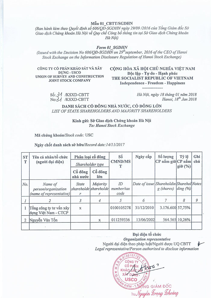 Thông báo về ngày đăng ký cuối cùng để thực hiện quyền chi trả cổ tức năm 202412/09/2025Chốt danh sách chi trả cổ tức_Nghị quyết Chi trả cổ tức_Nghị quyết ĐHĐCĐ_0001 của Công ty cổ phần khảo sát và xây dựng - USCO