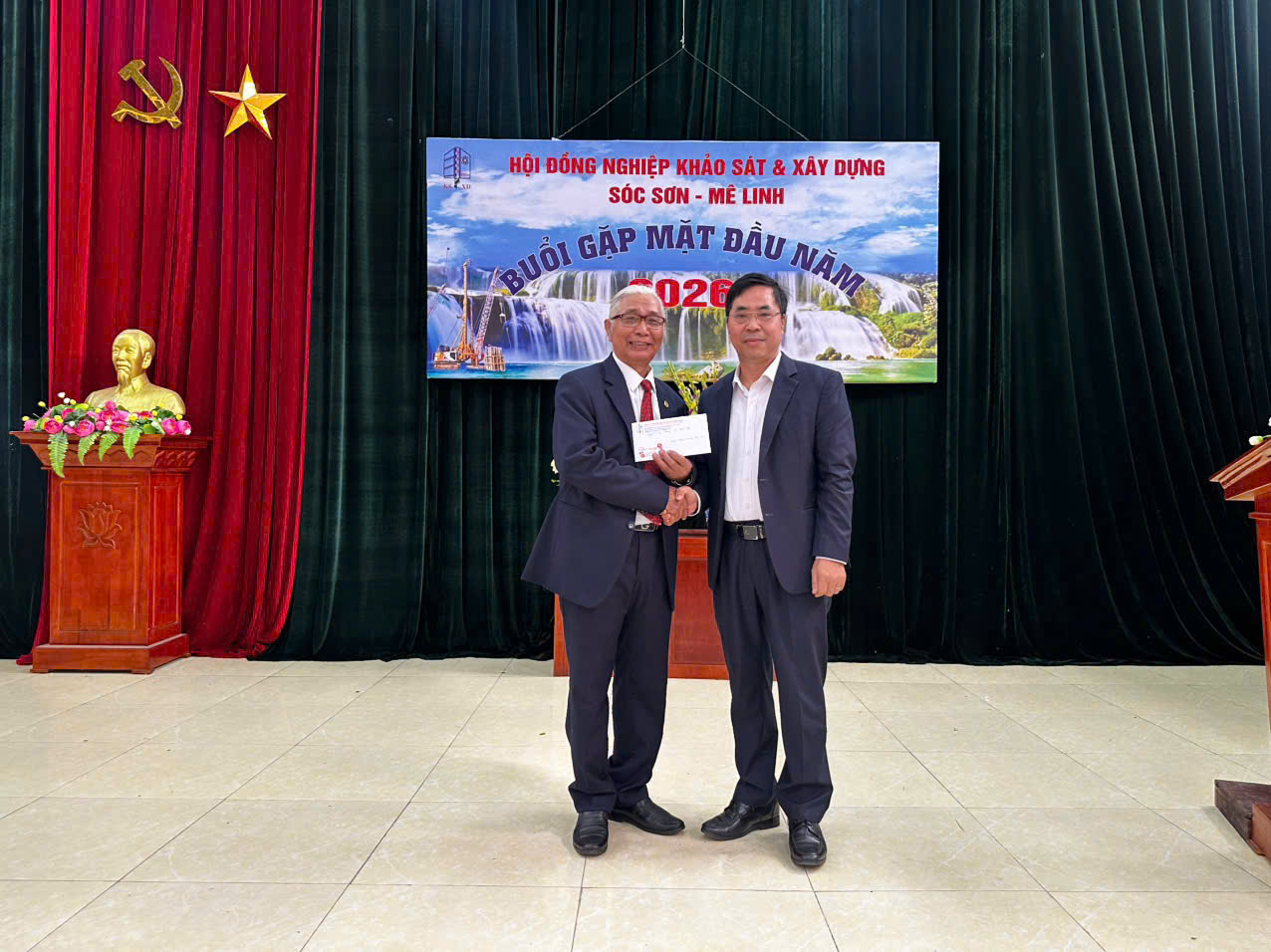 Sáng ngày 01/01/2026, đại diện Lãnh đạo Công ty USCO đã đến dự và chúc tết hội viên tại buổi gặp mặt đầu năm Hội đồng nghiệp khảo sát và xây dựng Sóc Sơn - Mê Linh được tổ chức tại Sóc Sơn - Hà Nội. Đây là dịp gặp gỡ mỗi dịp đầu năm mới của CBCNV người Sóc Sơn - Mê Linh đã và đang công tác tại Công ty USCO.