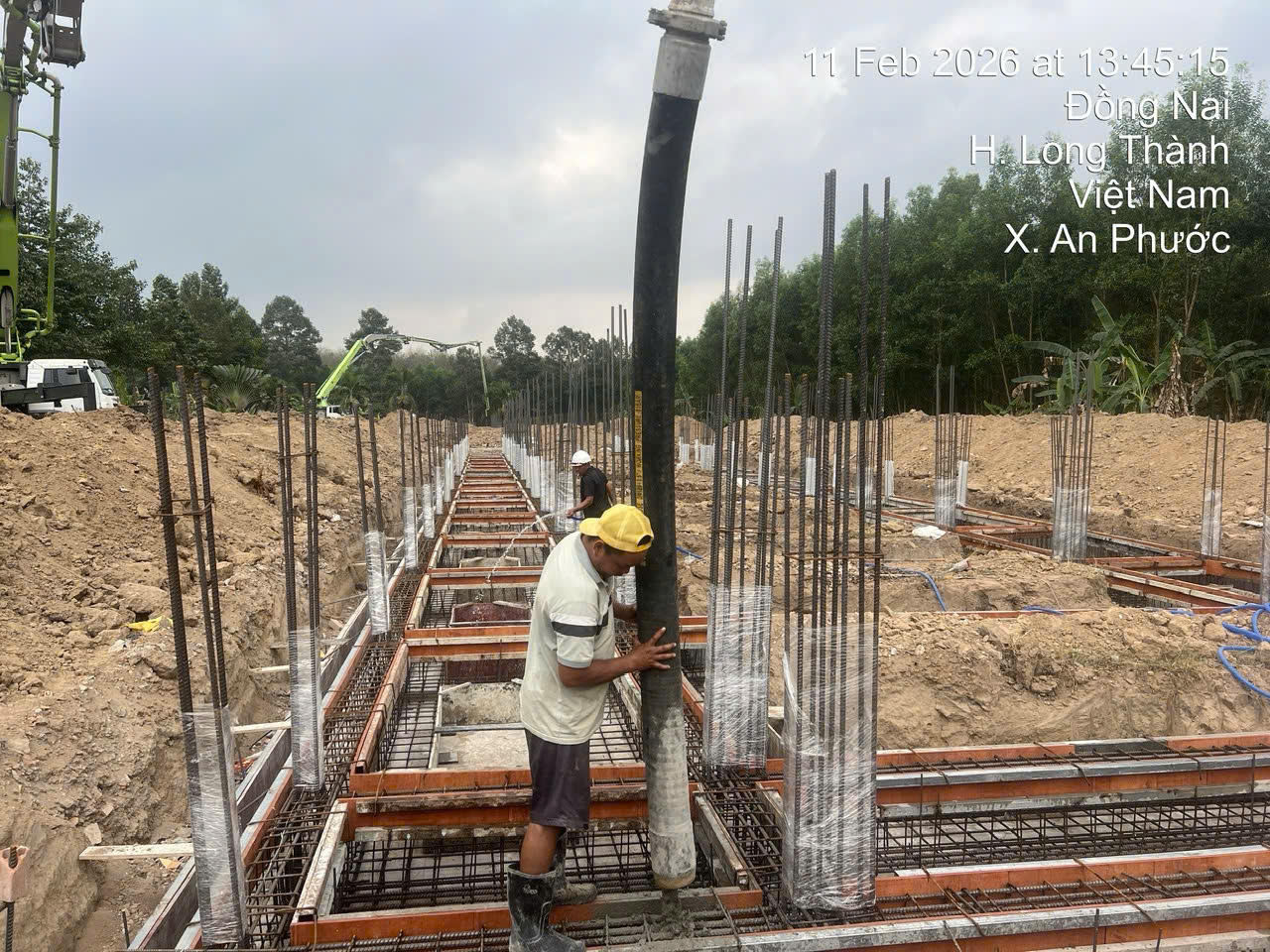 Hình ảnh Công ty USCO thi công Dự án Xây dựng, nâng cấp Tiểu đoàn 5/ Phân hiệu miền Nam/ Trường Trung cấp kỹ thuật Tăng thiết giáp tại Long Thành, Đồng Nai - Công tác đổ và bảo dưỡng bê tông lót móng.