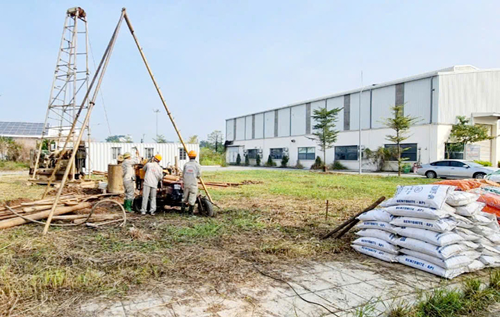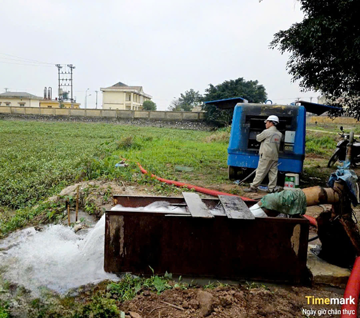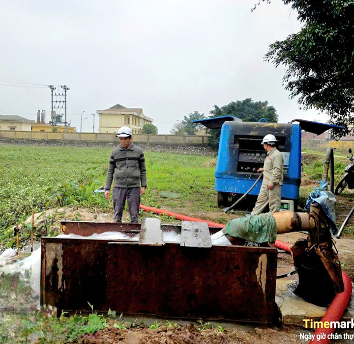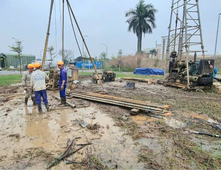 Thi công hạng mục di chuyển giếng khoan khai thác nước ngầm của Trạm cấp nước Hồng Vân thuộc Dự án đầu tư xây dựng đường Vành đai 4 - Vùng Thủ đô Hà Nội.