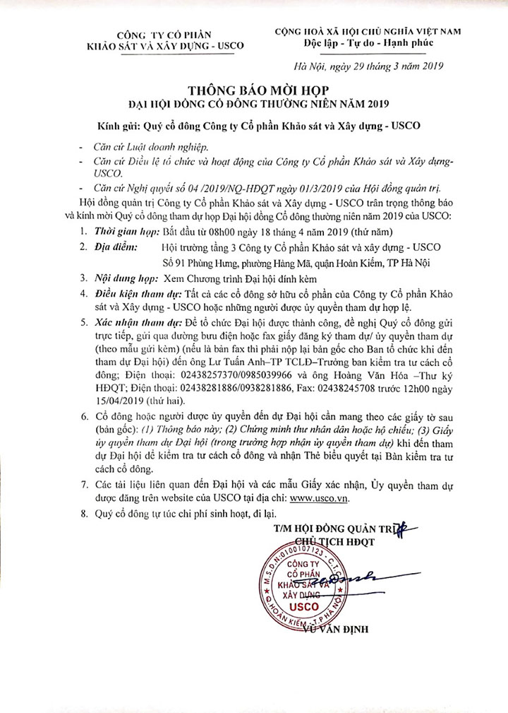- Dự thảo Nghị quyết Đại hội đồng cổ đông thường niên năm 2019 (xem tại đây)