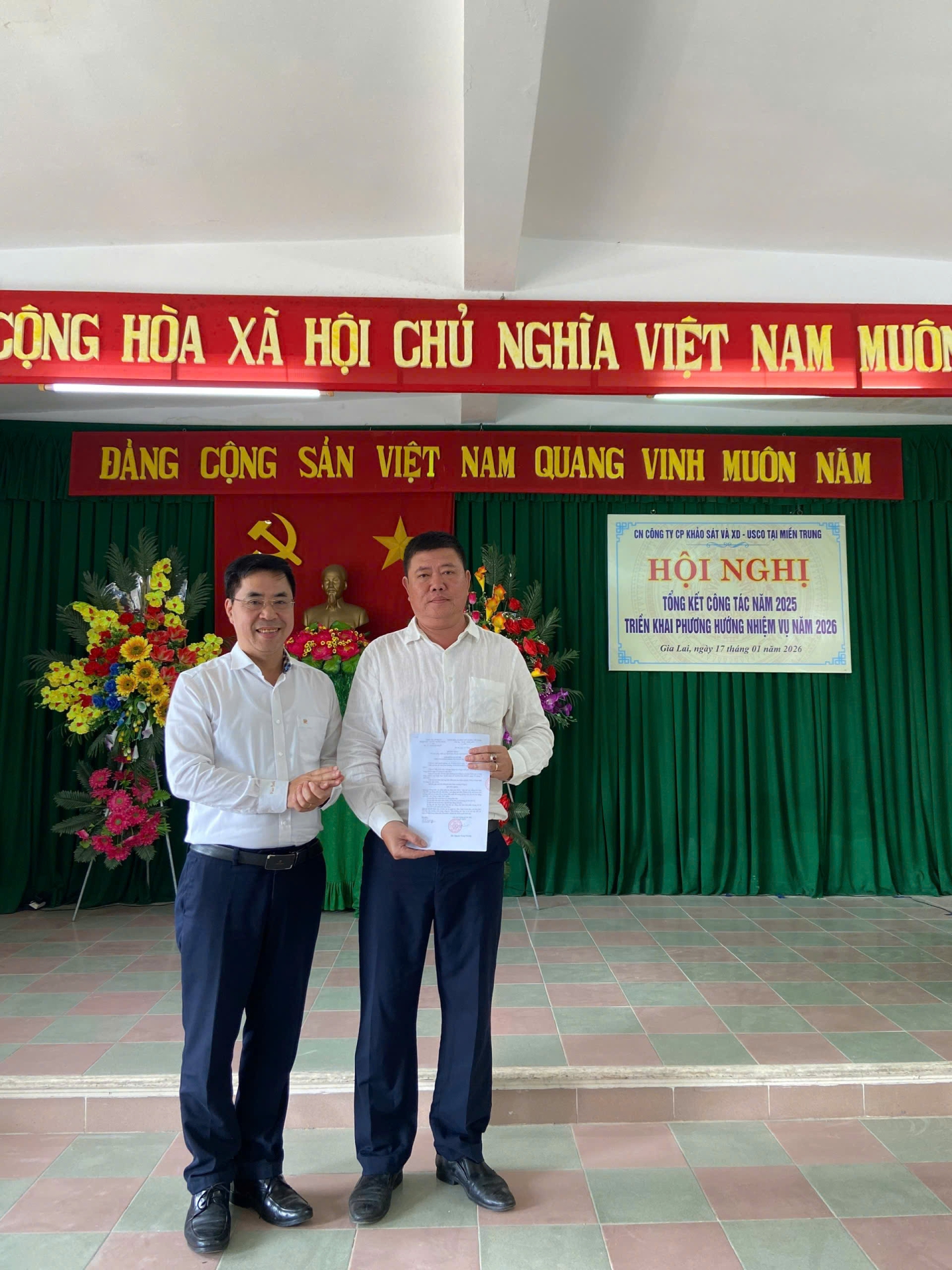 Trong thời gian từ ngày 17/01/2026 đến ngày 21/01/2026, các chi nhánh, đơn vị trực thuộc Công ty Cổ phần Khảo sát và Xây dựng – USCO khu vực miền Trung, miền Nam đã trang trọng tổ chức Hội nghị tổng kết công tác năm 2025 và xây dựng kế hoạch công tác năm 2026.